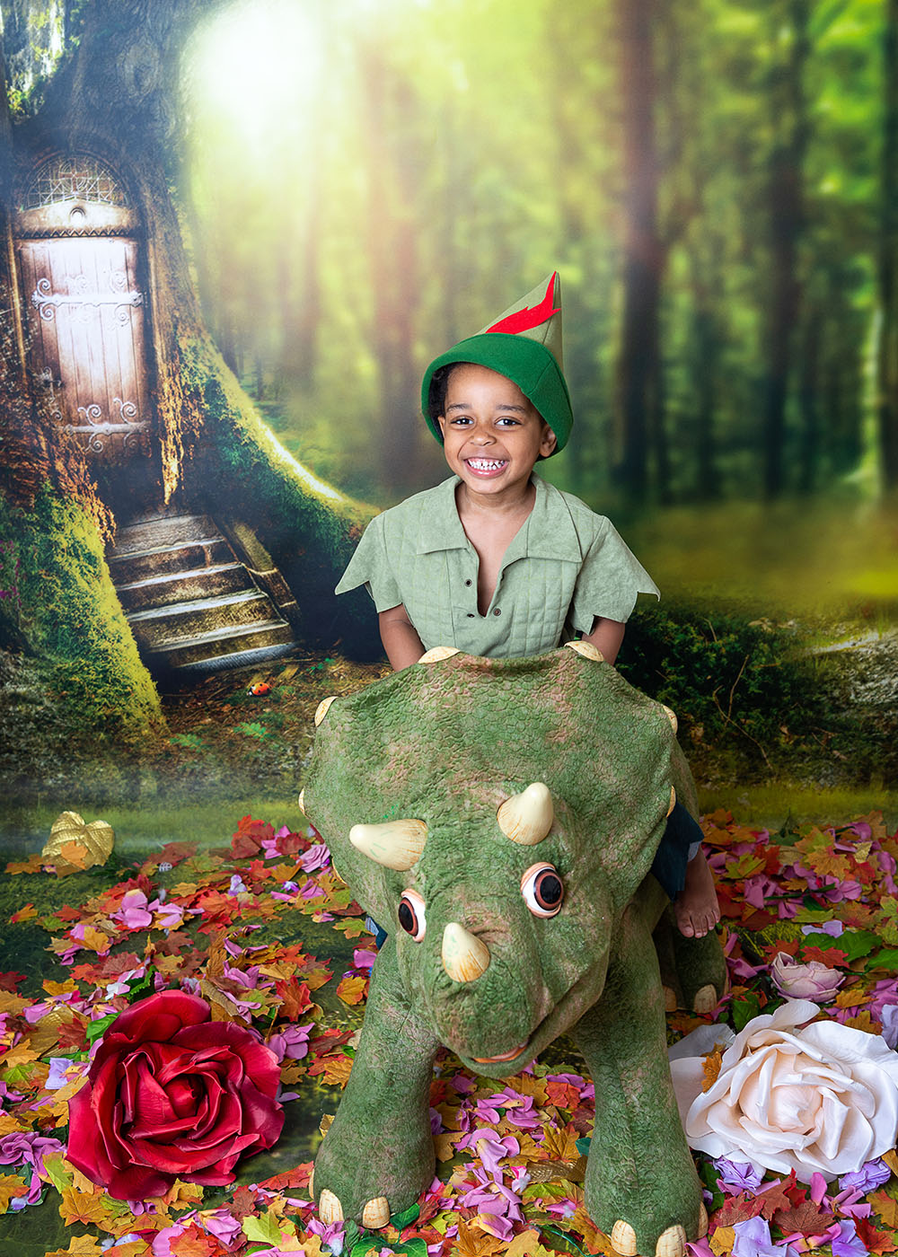Raphael explored our studio and liked the fairy-themed setup we had created for the family photography shoot. He chose a Peter Pan outfit to match the set. He was so happy to find a smiling dinosaur in our studio. He posed for us sitting on that toy.His broad smile gave us immense satisfaction. These are the shots that keep on motivating us to try harder and take beautiful pictures.