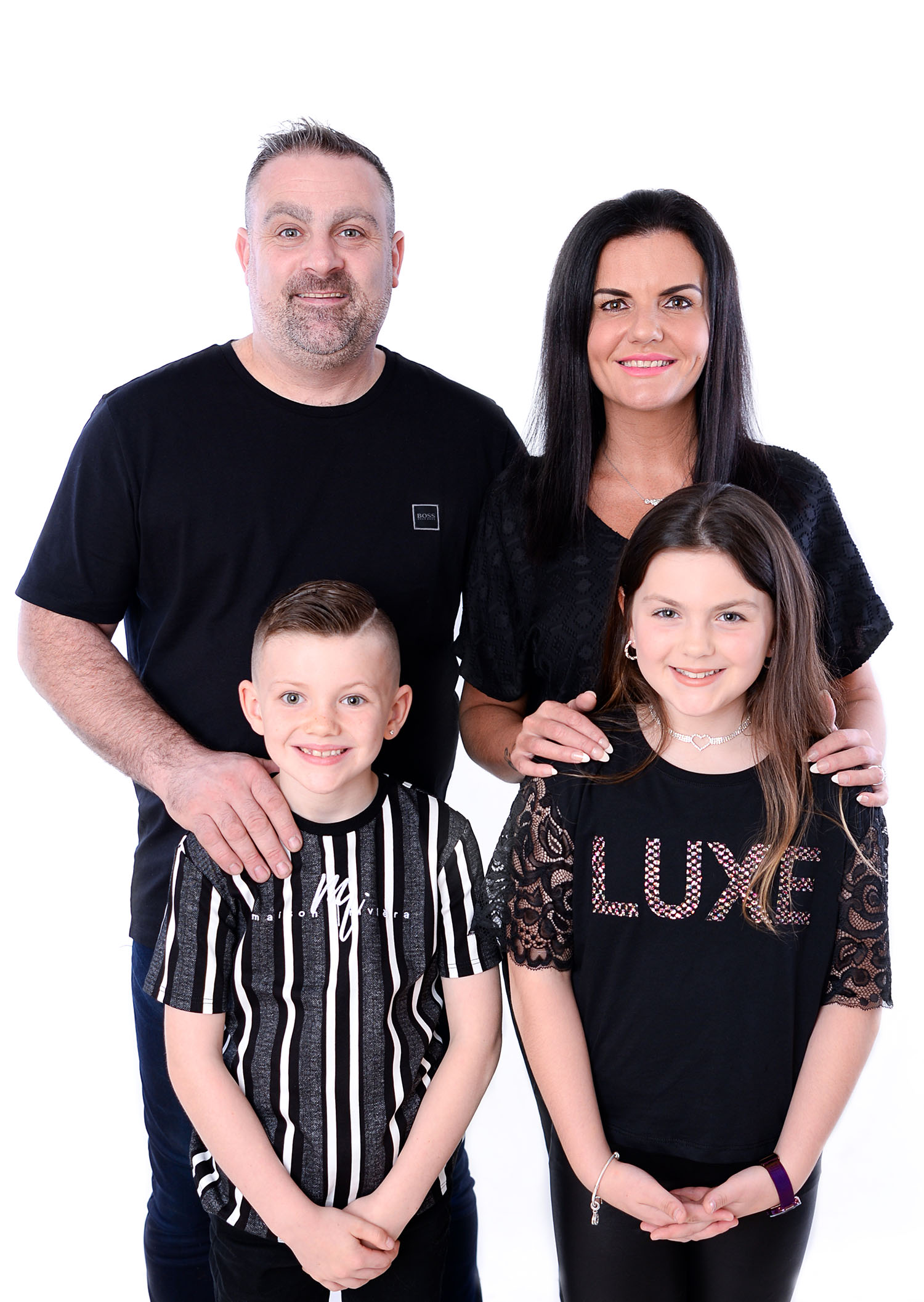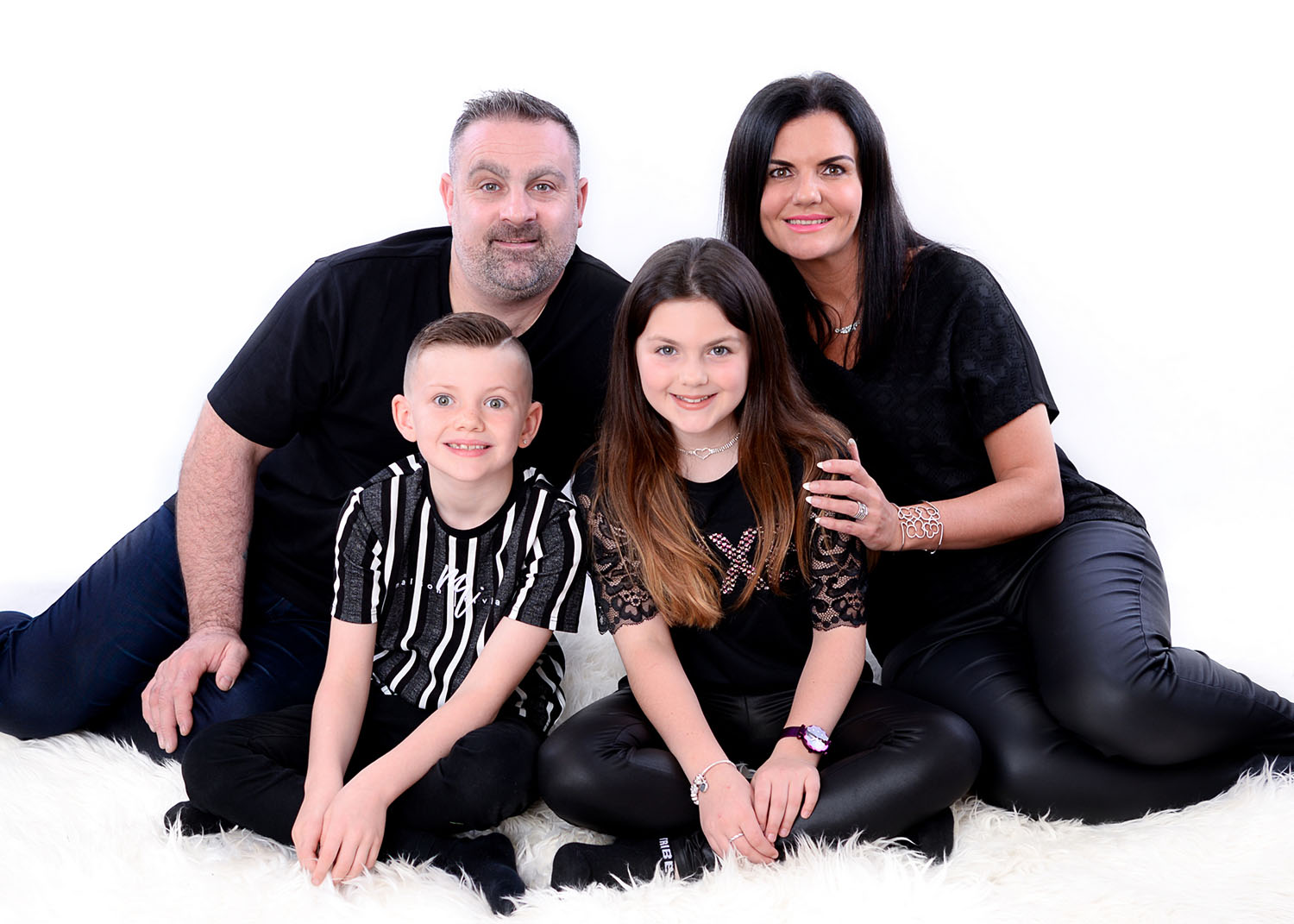 Let us introduce you to the Quigley family. Alanna is a sweet girl and elder of the two. She has a bright smile and a sunny personality. For the photo session, she wore a black top along with black leather pants. We had decided to choose black as the theme colour of this family album as the entire family loves black.
