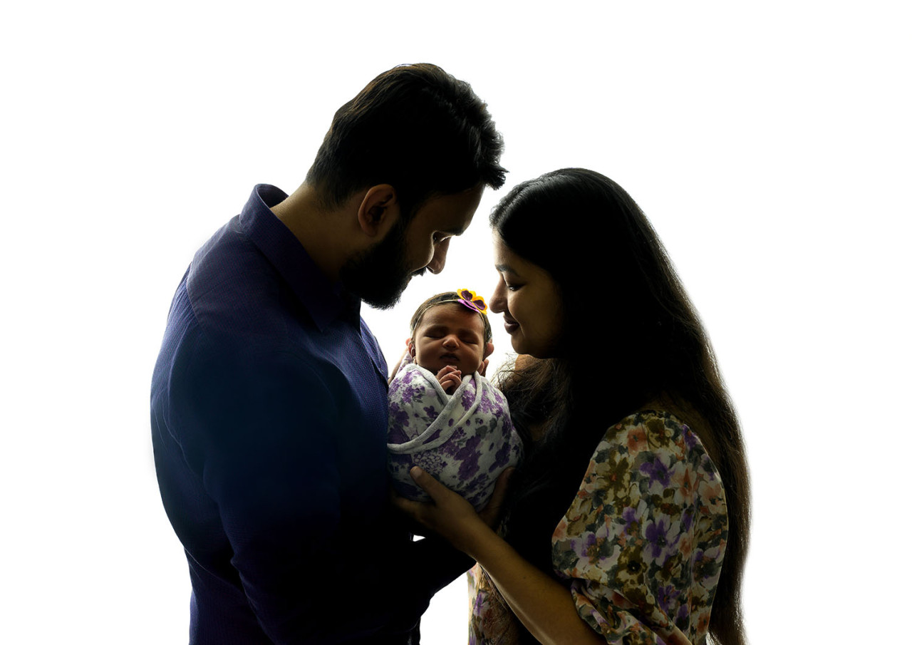 How do parents feel when they look at their children? I think it is not possible to express this in words. I have done many newborn photoshoot assignments in Glasgow; each time I get the parents and their kids in the same frame, I am overwhelmed by their emotions. I believe nothing is more divine than holding your baby and caressing it. I witnessed the same thing with Alora and her parents, Linta and Dipin.